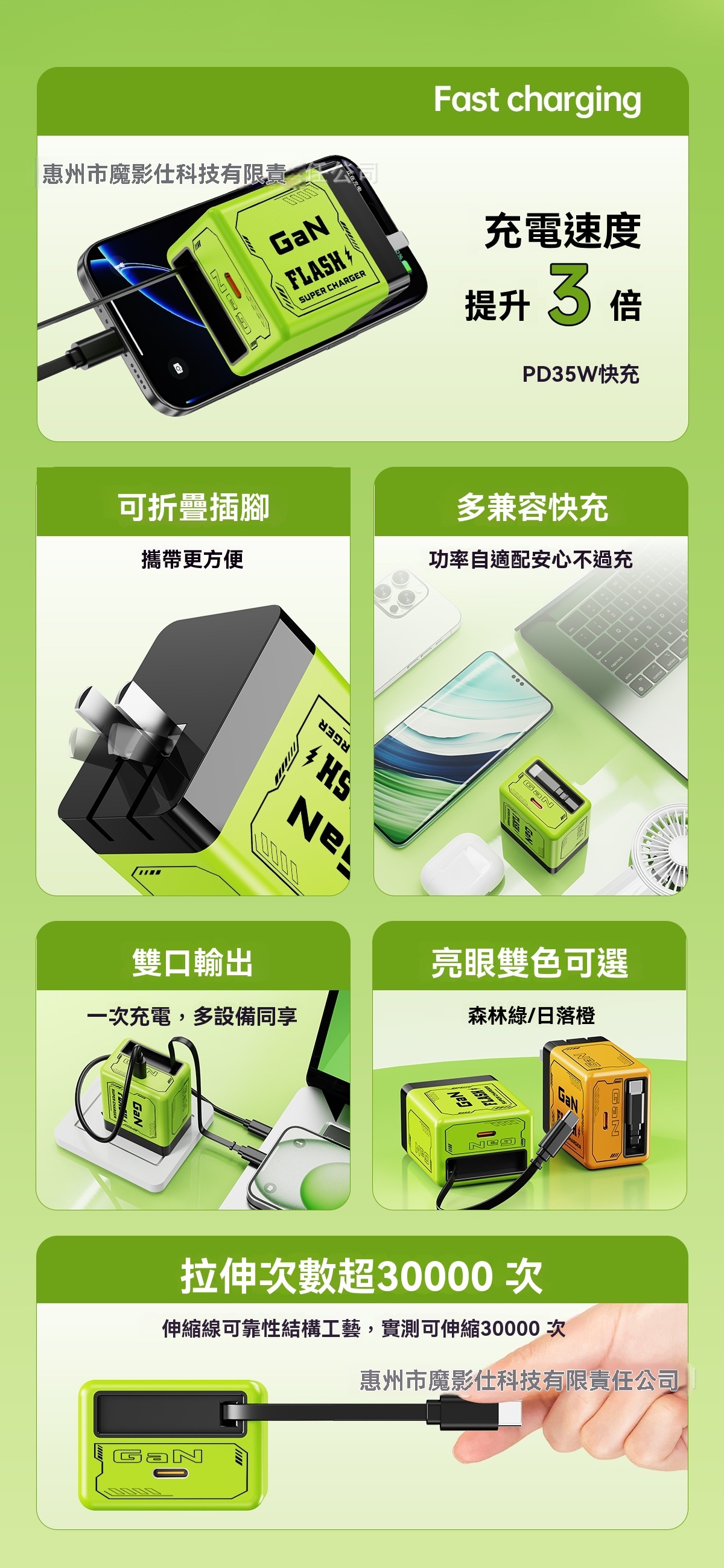 【機甲風35W快充|低溫不發熱,Type-C伸縮線一體充電神器!】