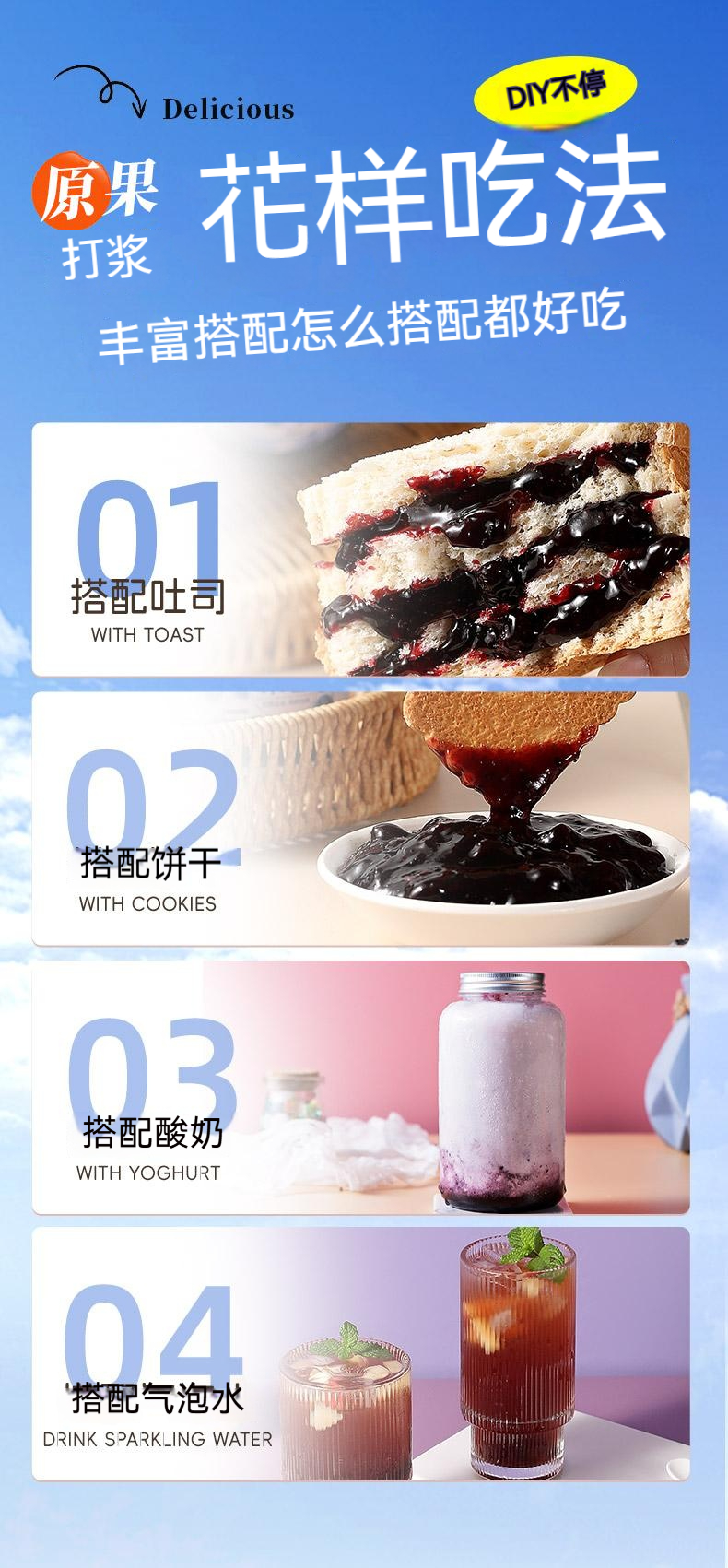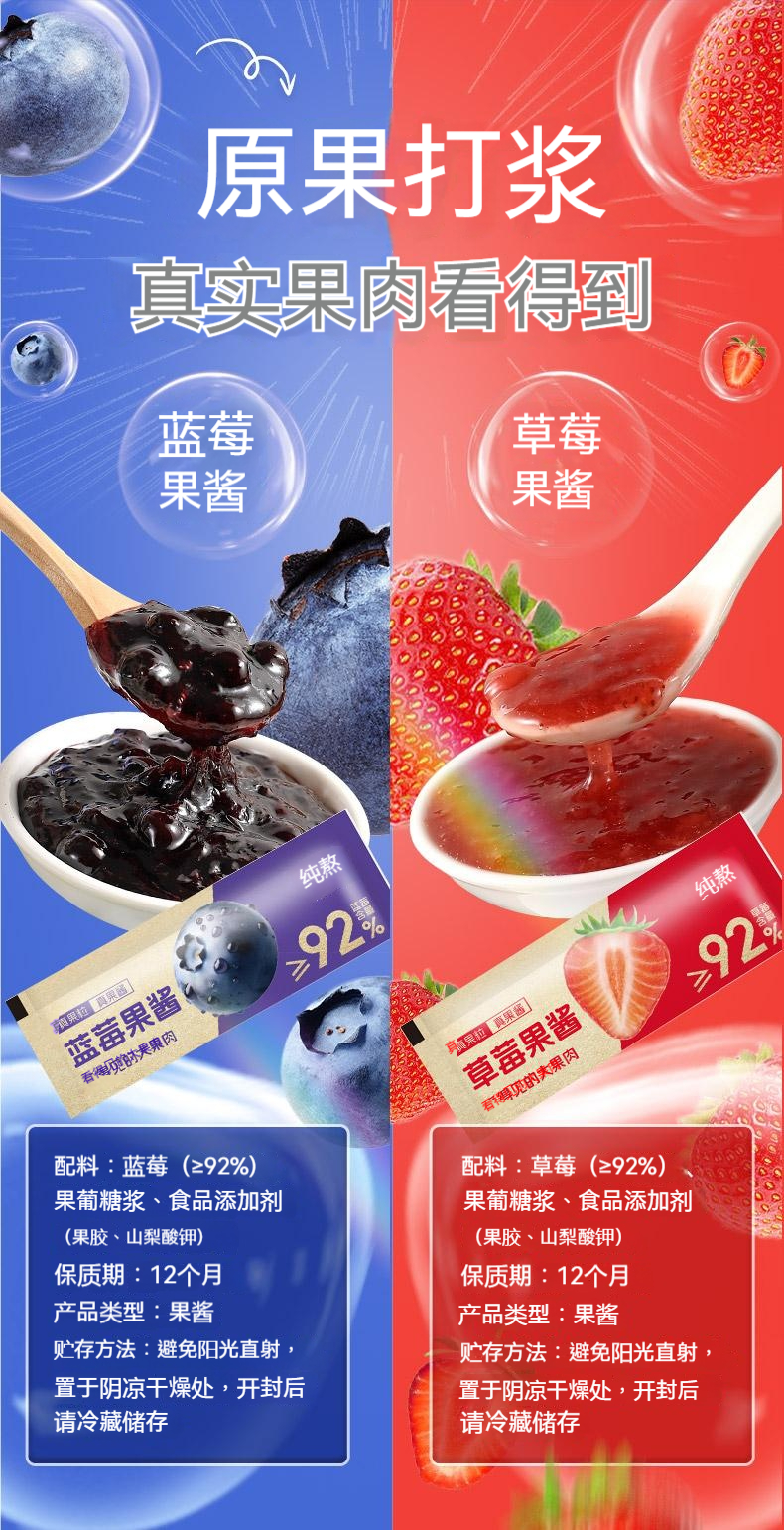 {{ order.time }}【訂購了】【原果打漿藍莓草莓果醬】藍莓草莓果醬,塗抹搭配吐司麪包,即食衝飲,獨立小包裝,果醬飲品