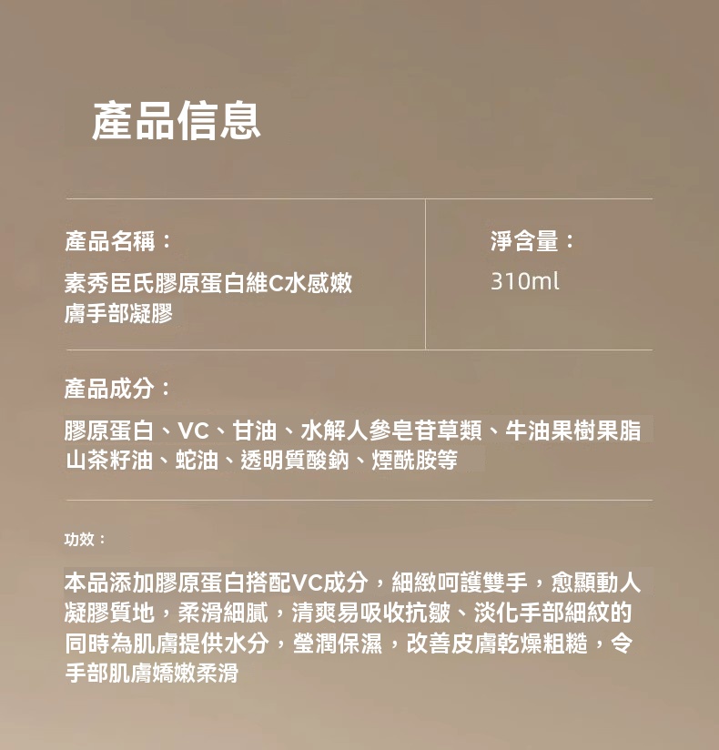 {{ order.time }}【訂購了】【素秀臣氏膠原美手奇蹟凝膠】維 C 沁潤,水漾嫩肌,指尖奢華新寵,深層滋潤補水!