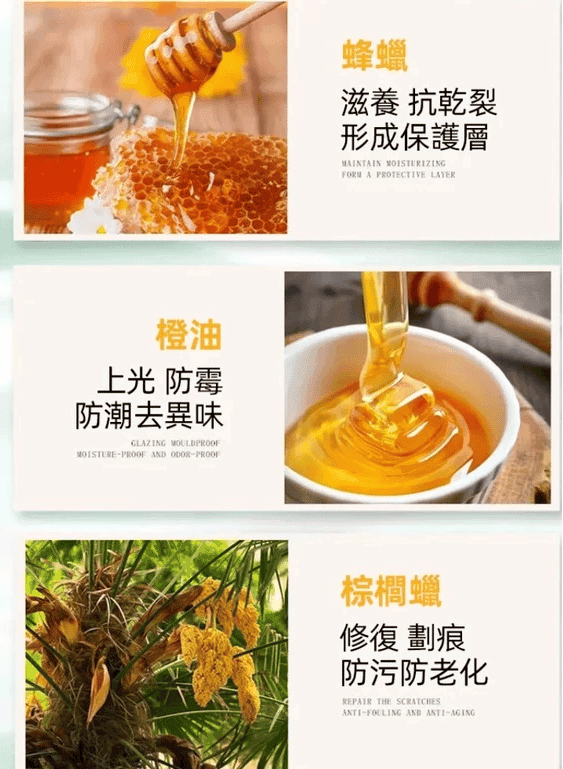 {{ order.time }}【訂購了】【實木保養蜂蠟】深層滋潤,溫和養護,防水防裂防霉,增加色澤
