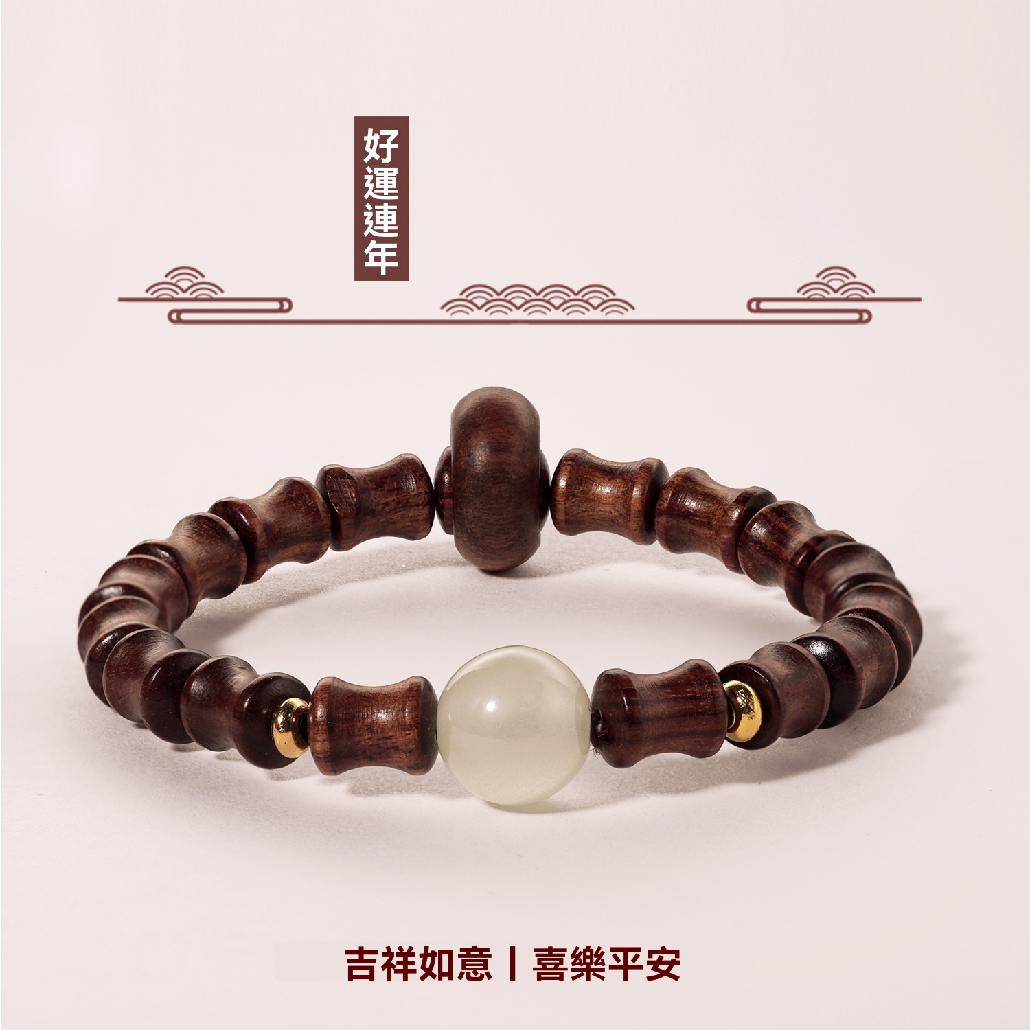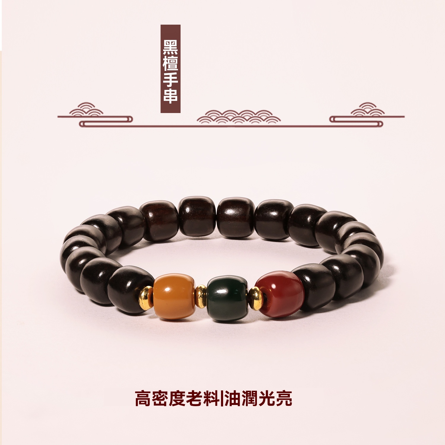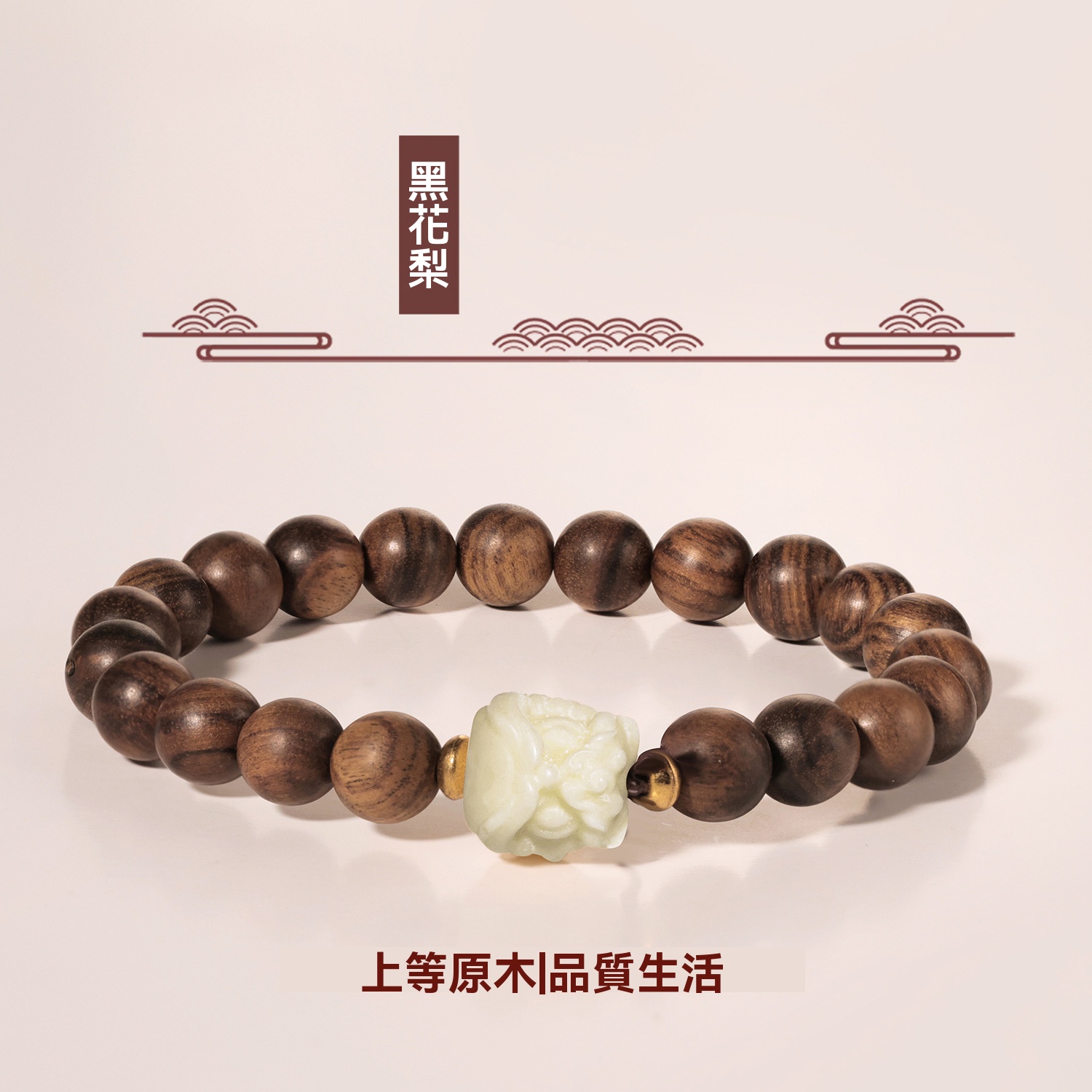 「純天然木質手串,花梨木與黑檀木完美結合,品味與魅力的象徵!」