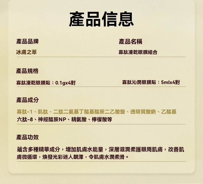 {{ order.time }}【訂購了】【冰膚之萃】膠原蛋白多肽淡化眼紋眼袋抗皺凍乾眼膜貼