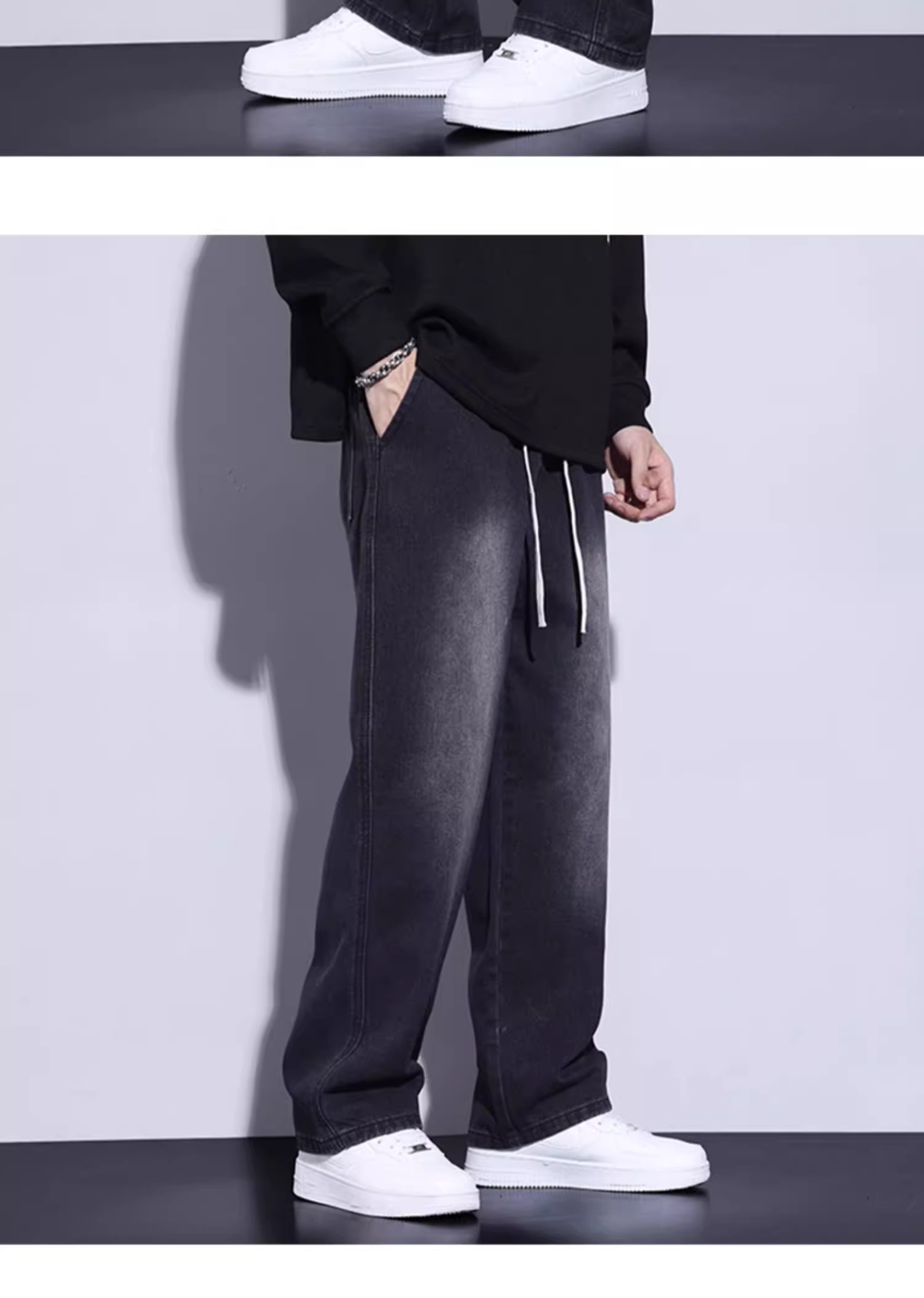 {{ order.time }}【訂購了】【日系逸境抽繩牛仔酷褲】男女同款寬舒直筒,鬆緊腰畔,潮流拖地,闊腿新尚