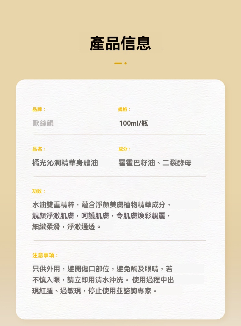 {{ order.time }}【訂購了】歐絲韻橘光沁潤精華身體油超強補水保濕、持久留香,讓肌膚煥發柔嫩光采!