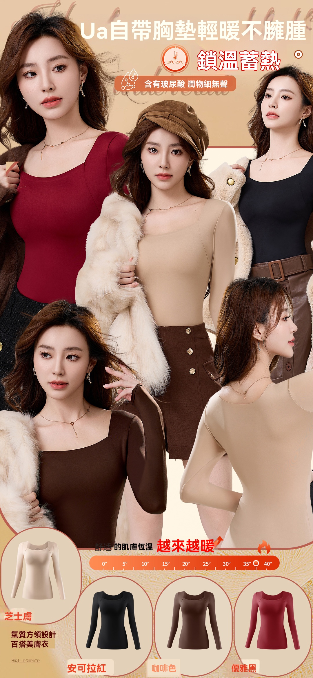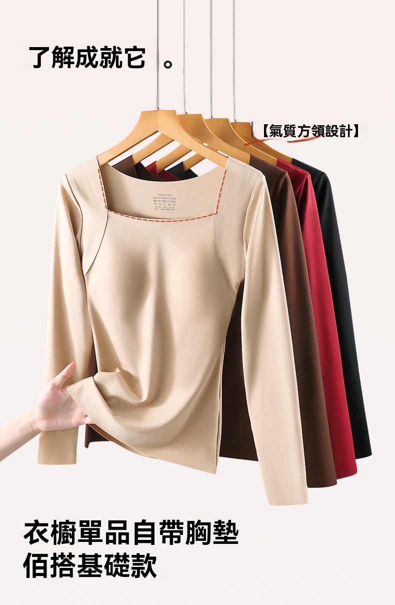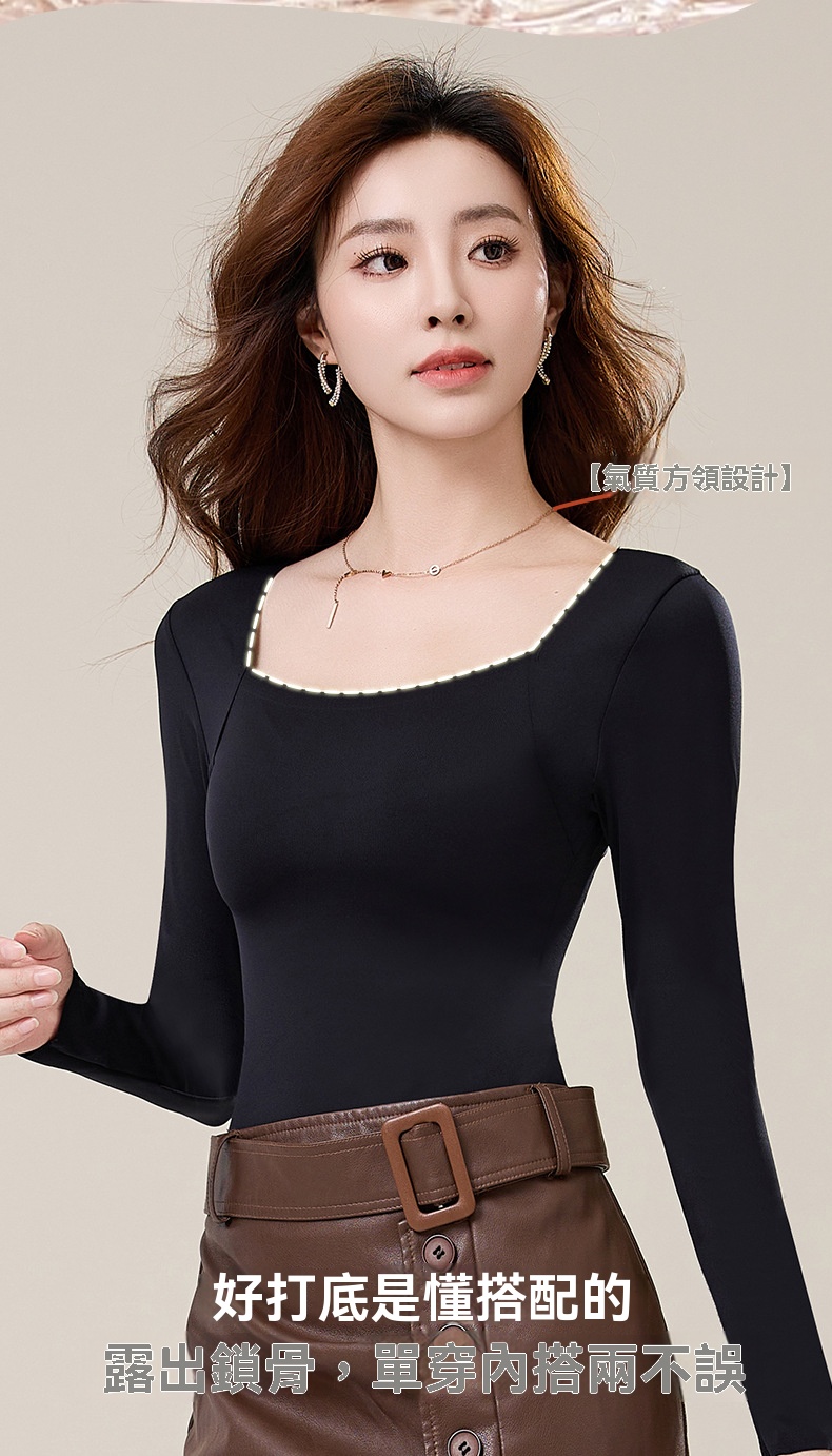 {{ order.time }}【訂購了】魅力方領打底衫丨磨毛舒適胸墊加持,美膚新機“衣”,百搭顯瘦長袖打底衣