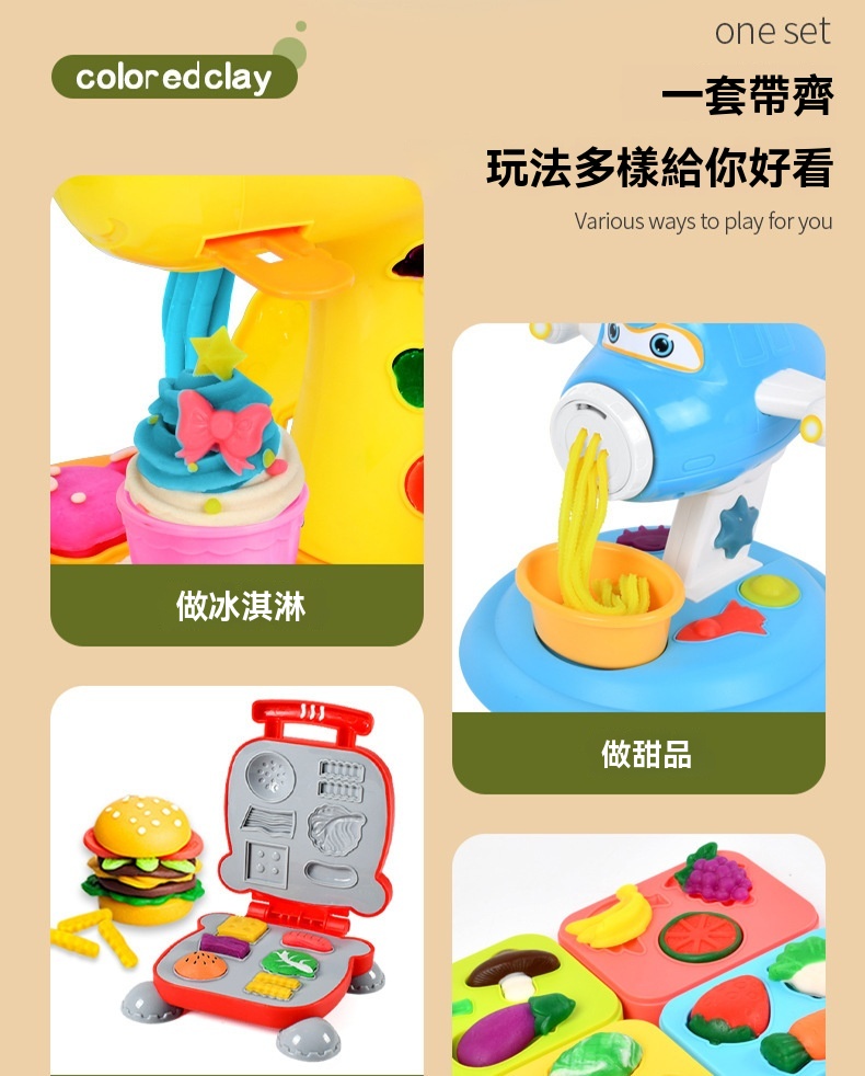 {{ order.time }}【訂購了】無毒橡皮泥彩泥兒童麵條機漢堡機冰激凌機黏土套裝幼稚園男女孩玩具