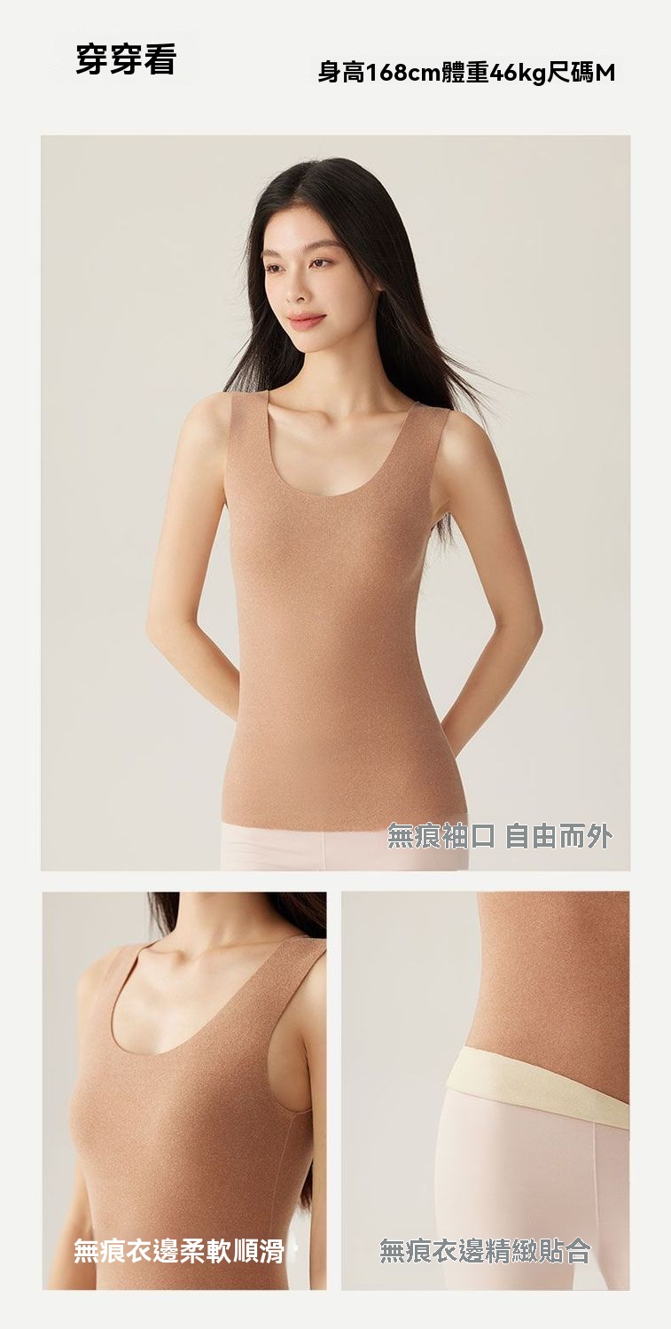 {{ order.time }}【訂購了】【艾草+雙面暖毧 保暖鎖溫親膚舒適】德絨無痕保暖背心女秋冬雙面磨絨貼身圓領加絨加厚打底上衣