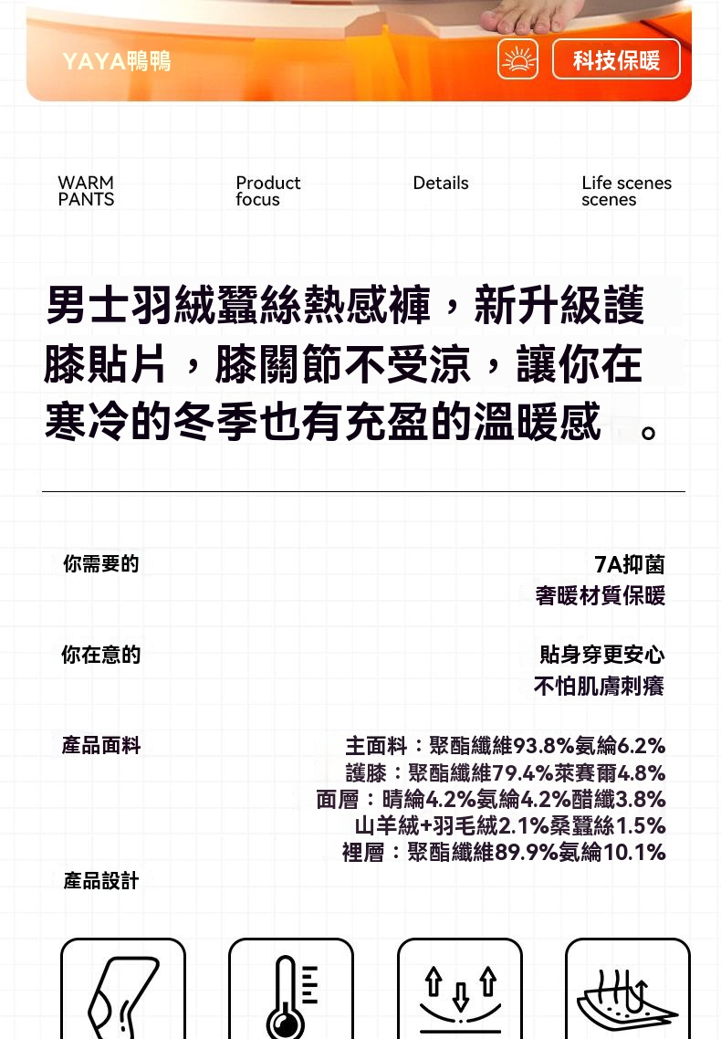 {{ order.time }}【訂購了】羽絨蠶絲護膝保暖褲,男士打底修身,秋冬內穿無痕底褲秋褲