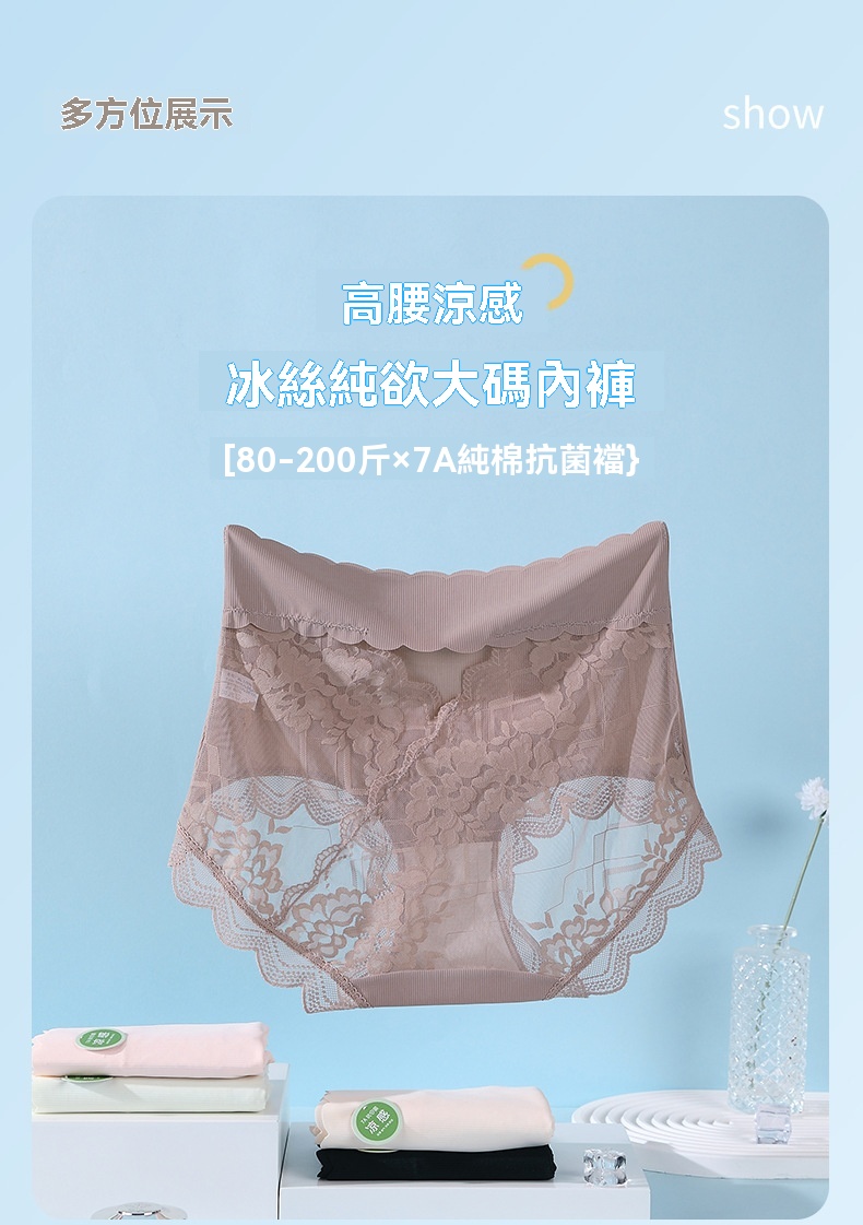 {{ order.time }}【訂購了】高腰大碼內褲女冰絲無痕性感蕾絲7A純棉抗菌裆三角短褲