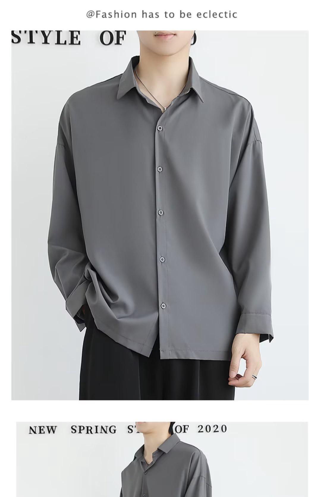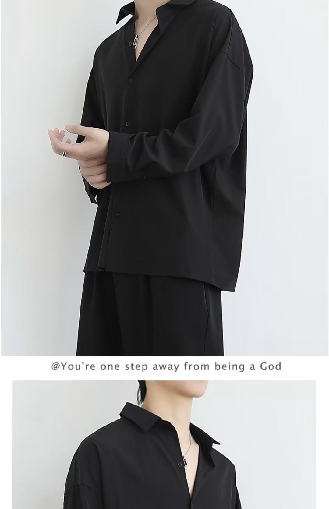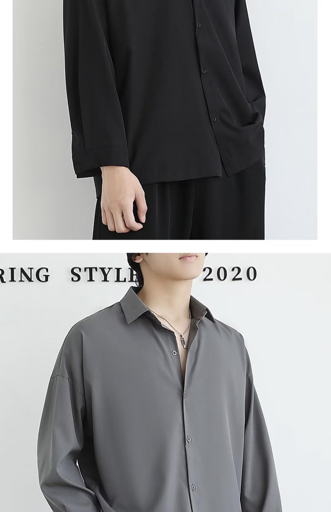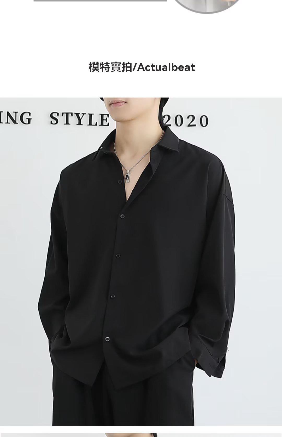 {{ order.time }}【訂購了】【潮流新春爆款襯衫】黑色休閒襯衫長袖,高級感痞帥冰絲襯衣內搭!超絕垂感不起皺!