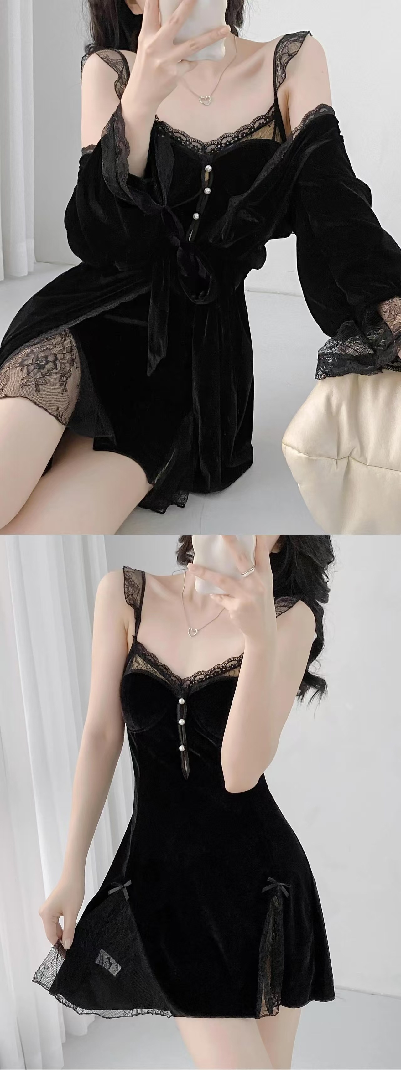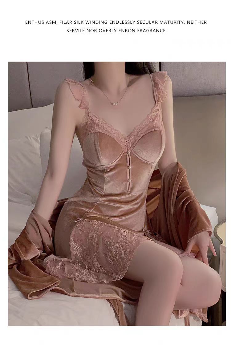 {{ order.time }}【訂購了】【高定輕奢性感睡裙】 金絲絨睡衣,女士睡裙,帶胸墊性感鏤空