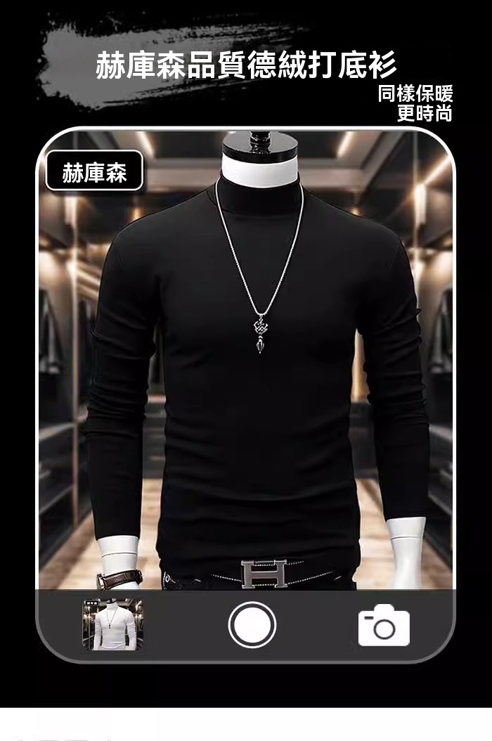 {{ order.time }}【訂購了】德絨內斂奢華 暖冬新主張,男款修身半高領德絨打底衫登場